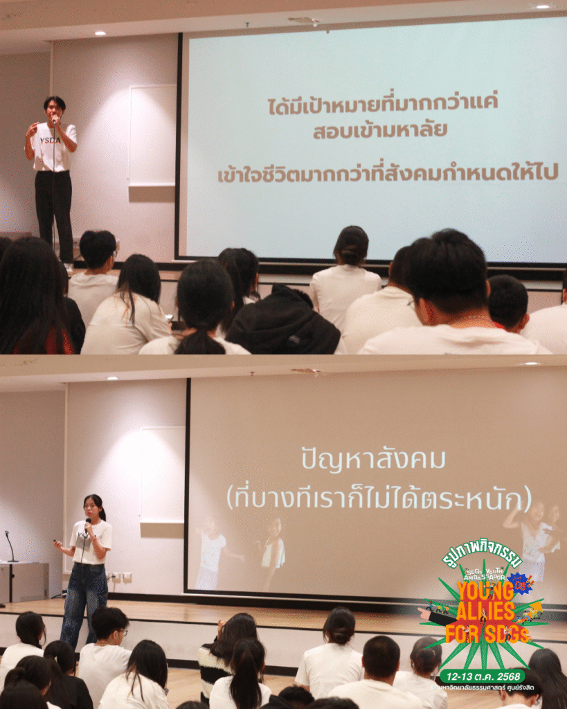 กับภาพบรรยากาศกิจกรรม Young Allies for SDGs ครั้งที่ 8 ในวันที่ 12-13 ตุลาคม 2568 ณ มหาวิทยาลัยธรรมศาสตร์ ศูนย์รังสิต![]()